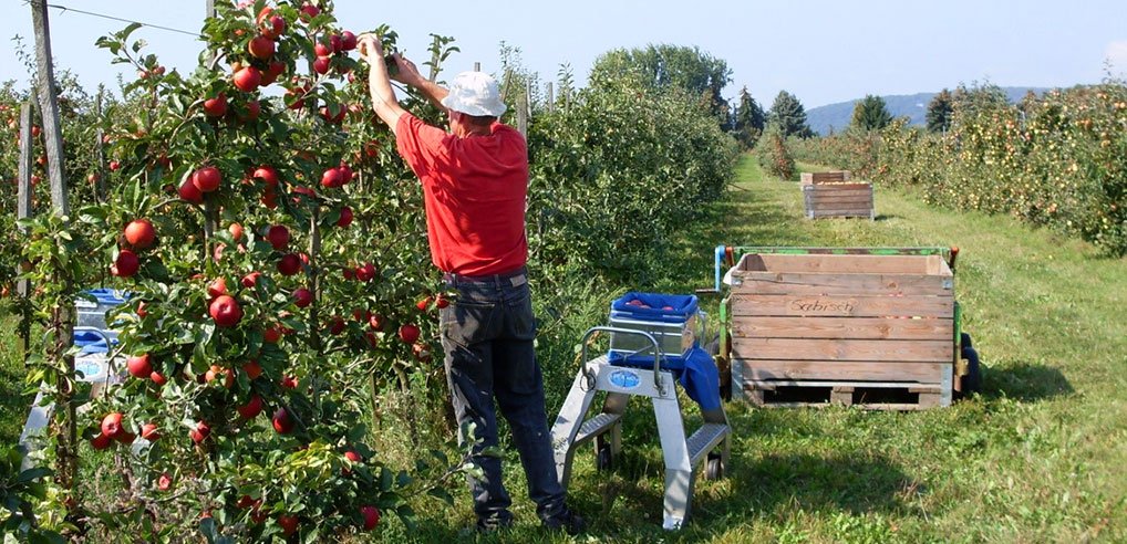 Mittlerweile sind es 4 Hektar Land die ich bewirtschafte. Ein Großteil davon sind Apfelbäume. Von den frühen Sorten bis hin zu den späten Lagersorten ist bei mir alles dabei. Bei mir gibt es aber auch Birnen, Zwetschgen, Trauben, Nektarinen, Beeren und Kürbisse.