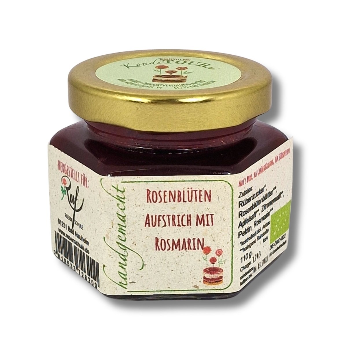 Rübenzucker*, Rosenblütenblätter**, Apfelsaft*, Zitronensaft*, Geliermittel Apfelpektin, Rosmarin*