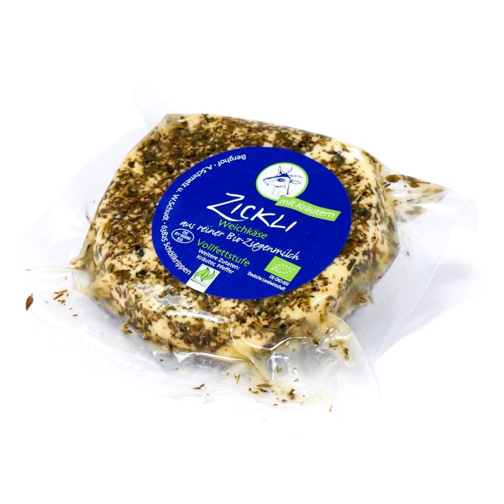Käse Zickli wurde nach unseren Ziegen benannt, obwohl der Käse gar nicht ziuckig schmeckt. er wird gerne in der mediterranen Küche verwendet. Seine Kräuermandel verleit Ihm seinen einzigartigen Geschmack.
