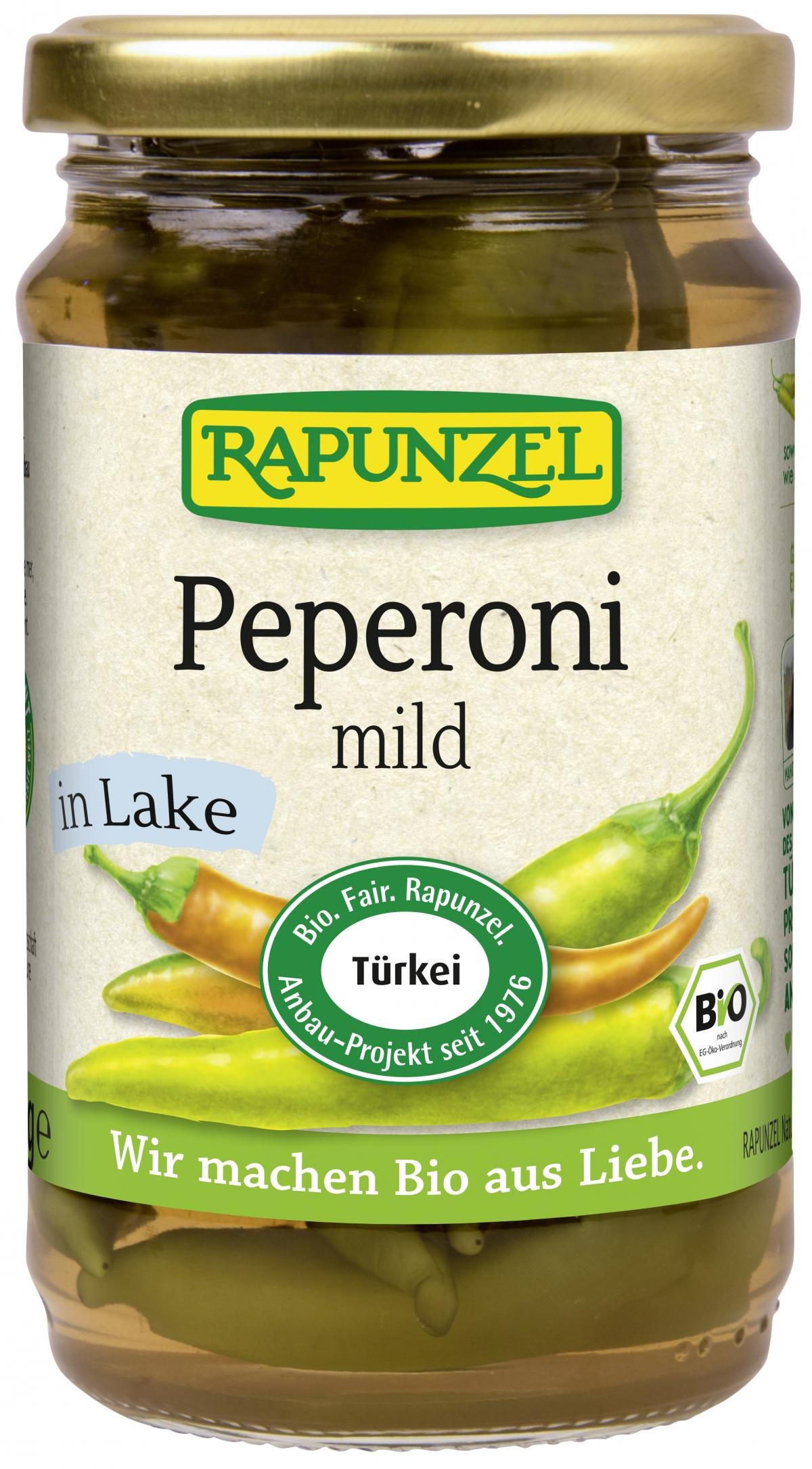 Mild-aromatische, bissfeste Peperoni von Bio-Bauern des Rapunzel Türkei-Projekts. Die Kombination leichter Süße und dezenter Schärfe machen sie zu einem echten Klassiker der mediterranen Küche.