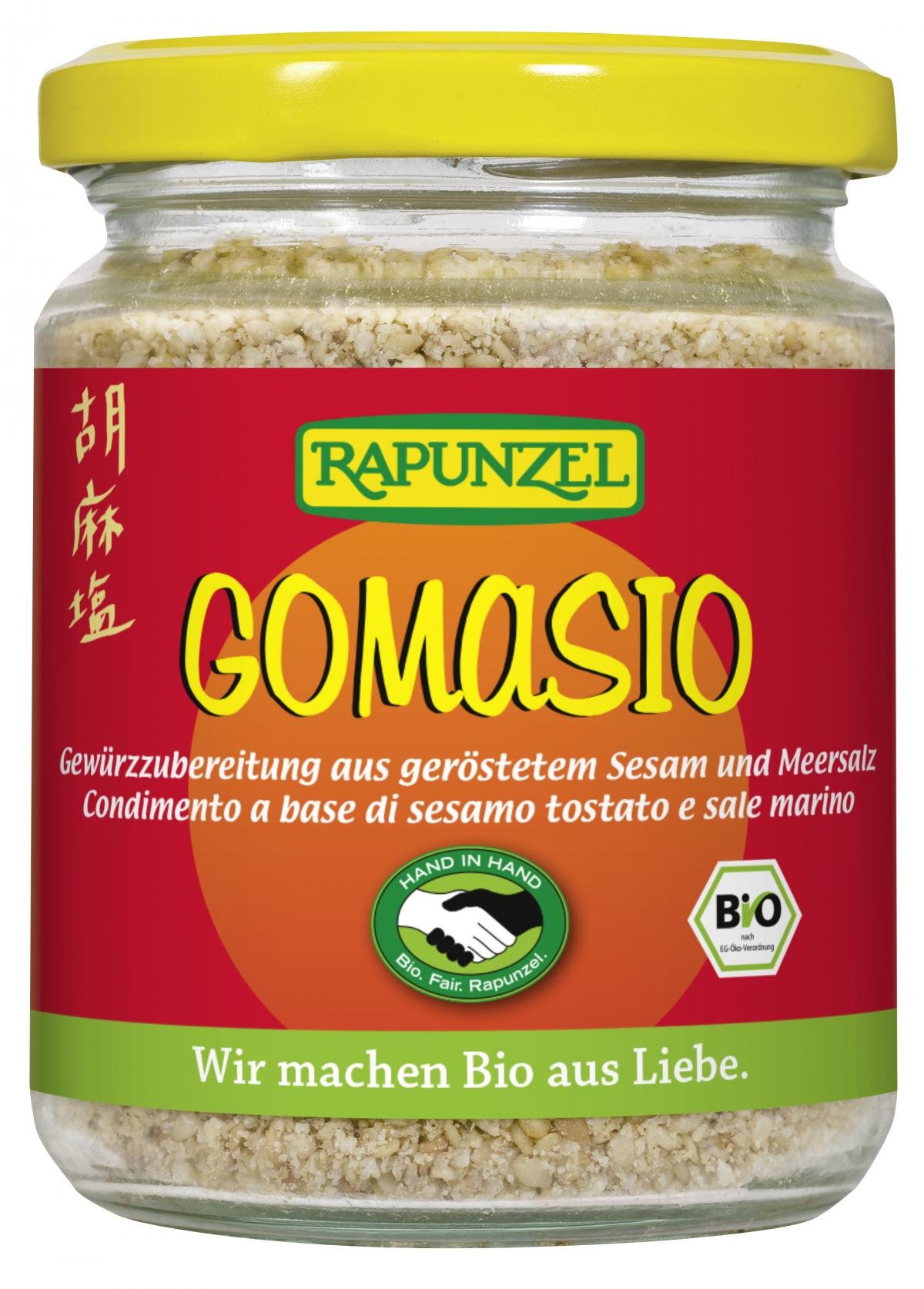 Gomasio - die traditionelle japanische Gewürzzubereitung aus geröstetem Sesam und etwas Meersalz. Gomasio würzt pikante Gerichte ohne sie zu stark zu salzen. Es passt hervorragend in die asiatische und die arabische Küche.