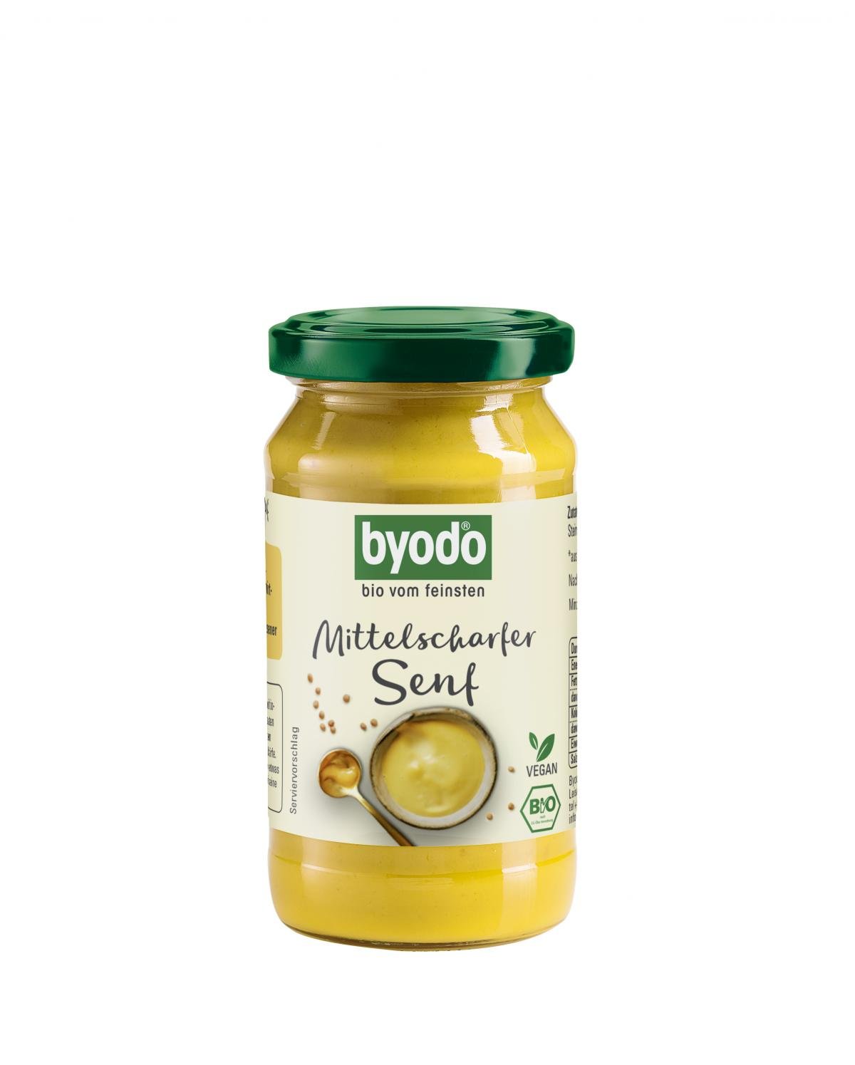 Der mittelscharfe Bio-Senf von Byodo schmeckt nicht nur zu Wurst und Käse, sondern verfeinert Dressings, Suppen sowie Fisch- und Fleischgerichte.