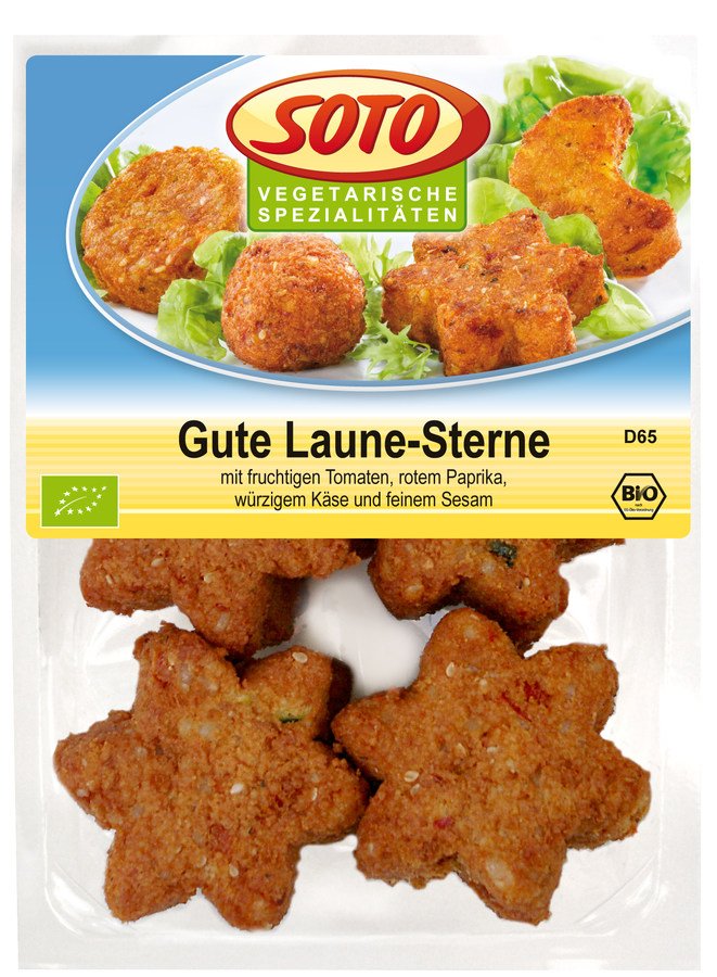 Die veganen Gute Laune Sterne auf Basis von Vollkornreis und mediterranem Gemüse sind herrlich saftig und weich. Eine Handvoll Sesam sorgt für das gewisse Etwas. Die besondere Form macht die Sterne gleich doppelt lecker, denn das Auge isst bekanntermaßen mit.