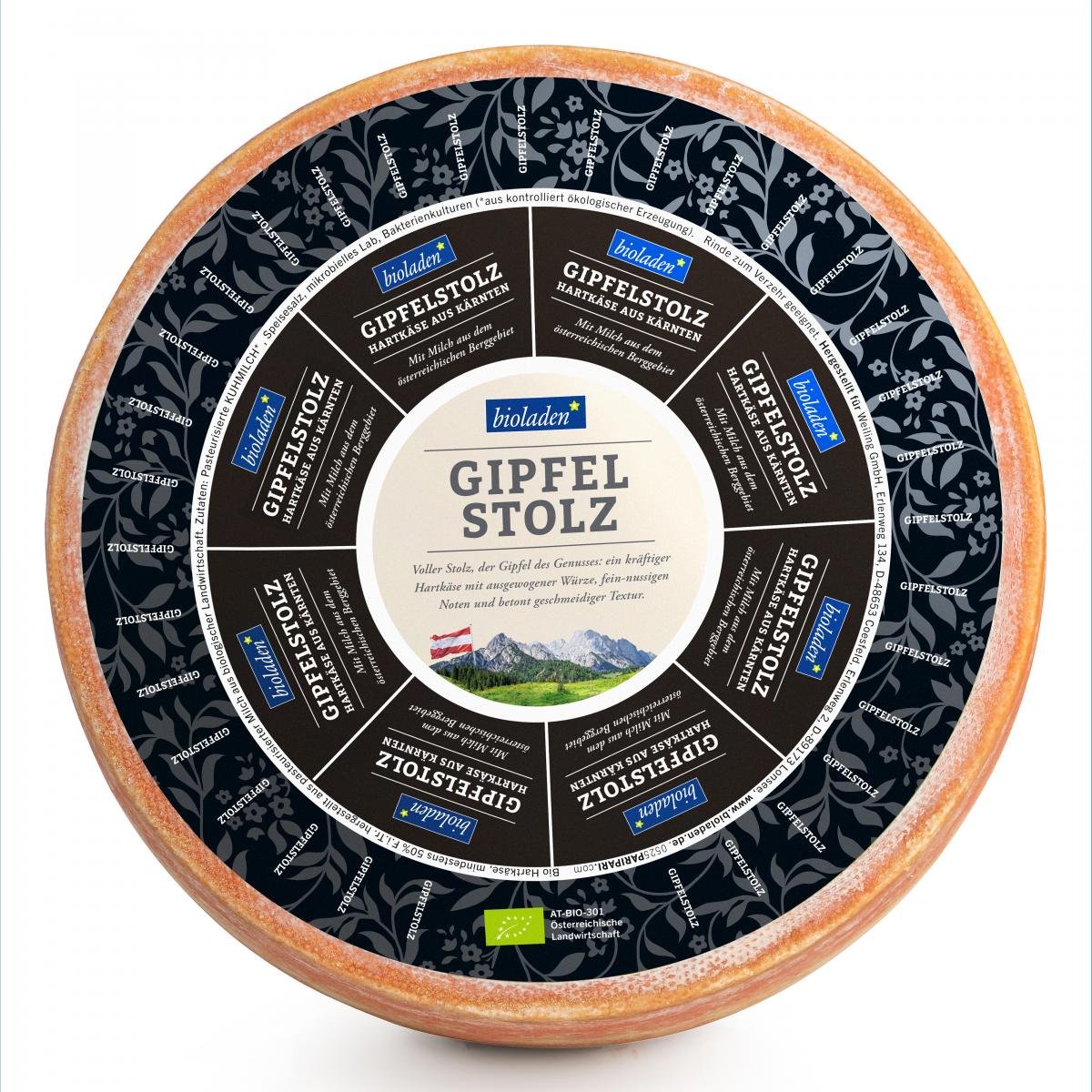 Voller Stolz, der Gipfel des Genusses: ein kräftiger Hartkäse mit ausgewogener Würze, fein-nussigen Noten und betont geschmeidiger Textur.
