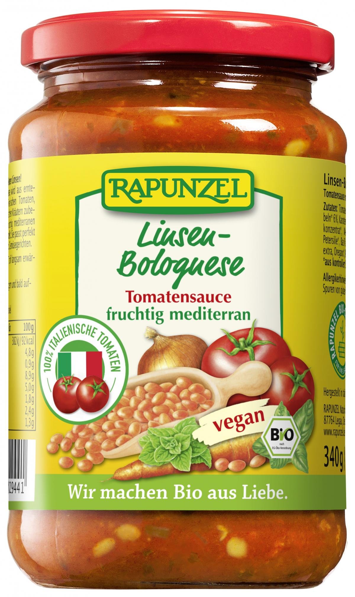 Die vegane Bolognese-Variante mit roten Linsen! Sie ist die perfekte Ergänzung oder Alternative zur Soja-Version. Die Bolognese wird aus sonnengereiften, erntefrisch verarbeiteten Tomaten, feinen roten Linsen und aromatischen Kräutern in Italien hergestellt. Sie schmeckt wunderbar fruchtig-mediterran und passt perfekt zu Pasta, Chili, Reis, Gemüsegerichten und in Lasagne. Einfach kurz erwärmen und genießen. Die in dieser Tomatensauce enthaltenen Tomaten stammen zu 100% aus Italien. Rapunzel unterstützt die Züchtung und den Erhalt von samenfestem Bio-Saatgut, z.B. auch für die Tomatensorte ´Mauro Rosso´.
