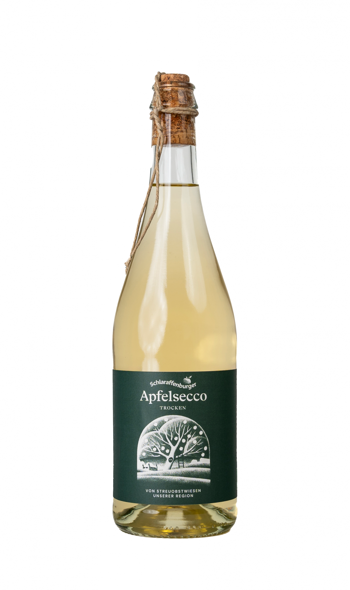 Die Basis für den Schlaraffenburger Apfelsecco ist ein traditioneller Apfelwein aus regionalen Streuobstsorten. Er wird durch eine Dosage mit feinem Quitten- und Birnensaft zu einem besonders prickelnden Erlebnis vollendet. Genießen Sie diesen Apfelsecco gut gekühlt!