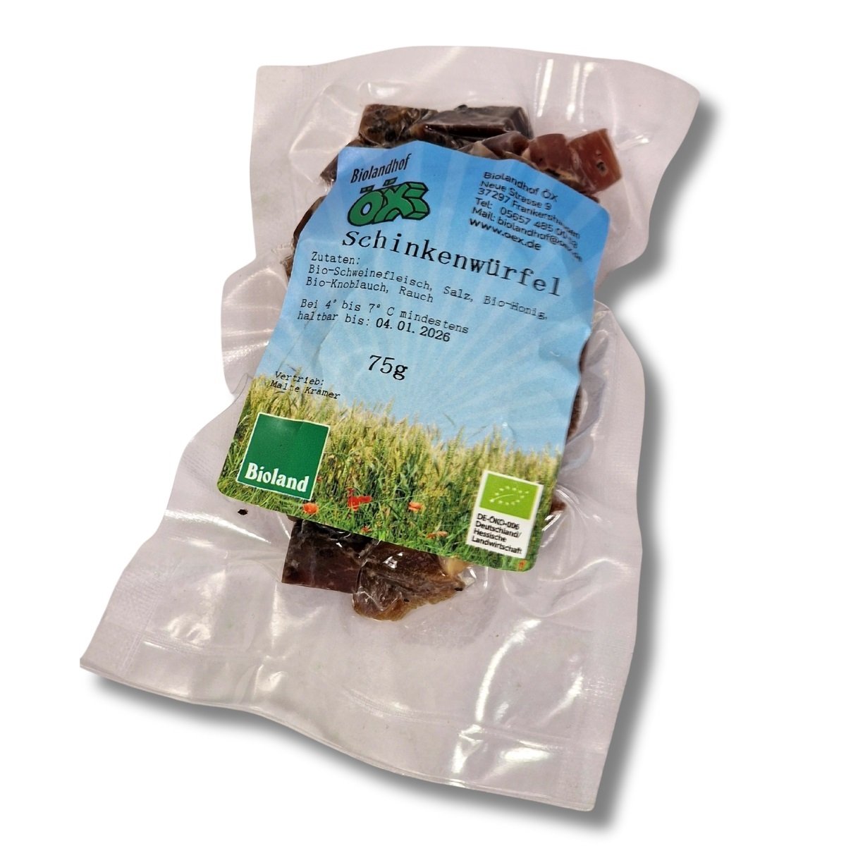 Bio-Schweinefleisch, Meersalz, Bio-Honig, Bio-Wacholder, Bio-Gewürze, Bio-Knoblauch, Rauch