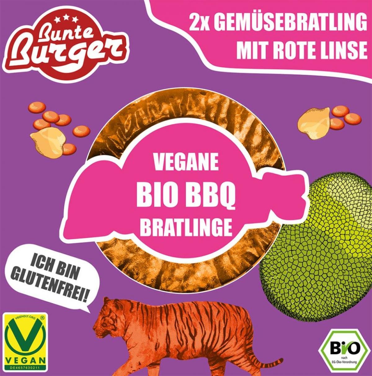 Der Bio Vegane BBQ Gemüse Bratling ist eine gesunde, ressourcenschonende und vor allem geschmackvolle Alternative zu herkömmlichen Fleischburgern, ohne dabei Fleischgeschmack zu imitieren. Die einfache Zubereitung und Ausgiebigkeit (2 Stück je 80g) machen den veganen Gemüse Bratling auf Basis von Roten Linsen, Jackfrucht und Kichererbsen mit einem Gemüseanteil von ca. 60% zu einer gesunden, leichten sowie leckeren Mahlzeit. In seiner Konsistenz ist der Gemüse Bratling innen zart und durch die roten Linsen knackig. Nach dem Anbraten wird er wunderbar knusprig. Abgerundet wird das Gourmet Convenience (Gourvenience) Erlebnis durch einen authentischen, leicht scharfen BBQ Geschmack, der ganz bewusst nicht an Fleisch erinnert.