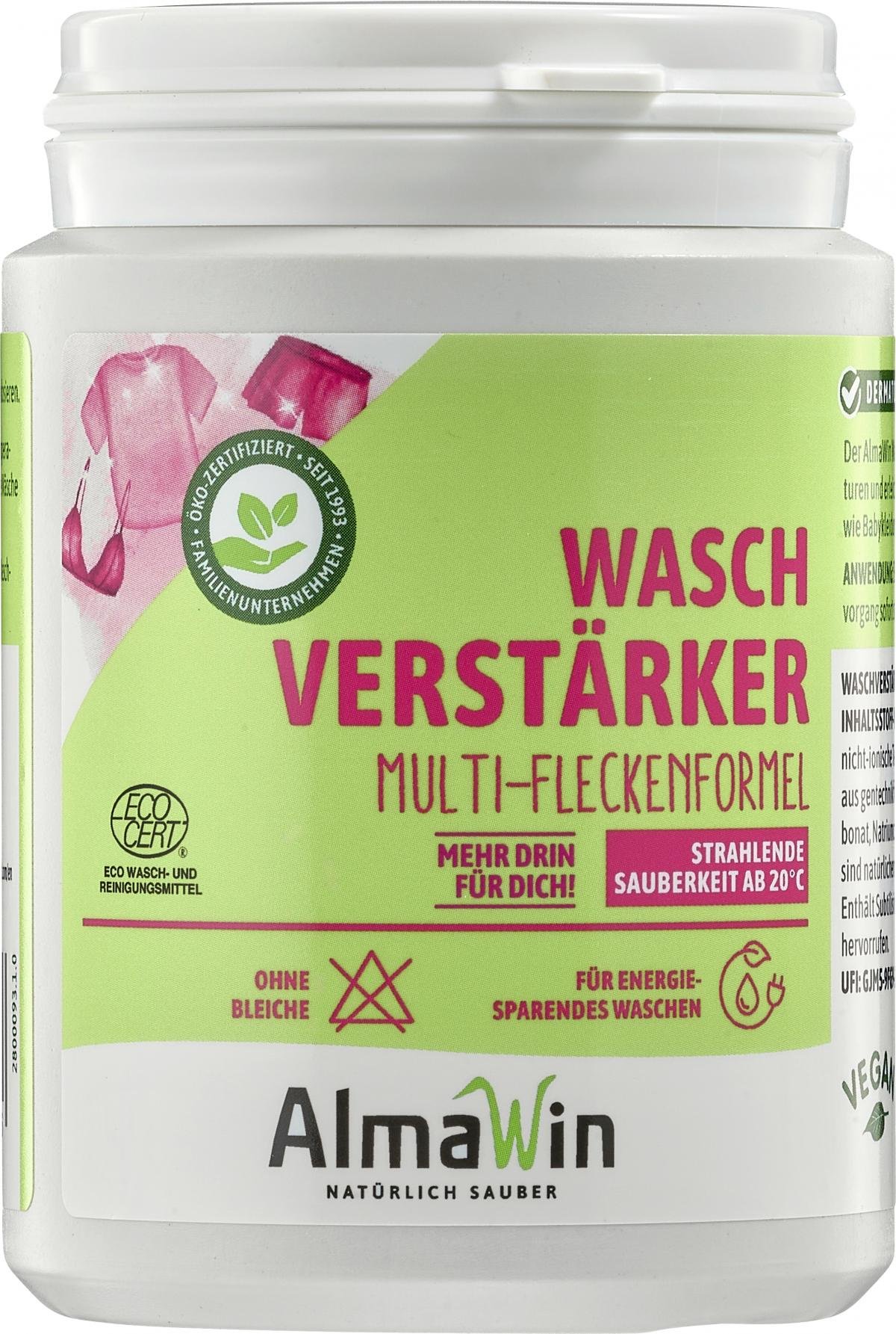 Bei starken Verschmutzungen 1 EL (20 g) Waschverstärker zusätzlich zum Waschmittel direkt in die Waschtrommel geben und den Waschvorgang sofort starten. Das verwendete Waschmittel wie gewohnt dosieren. Nicht geeignet für Wolle & Seide