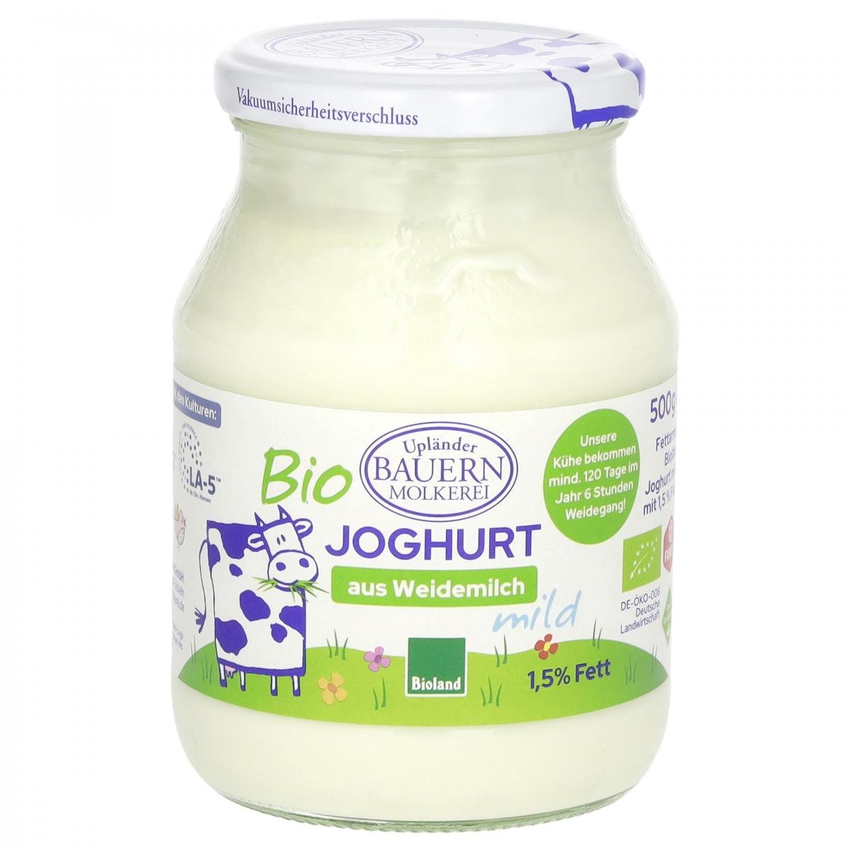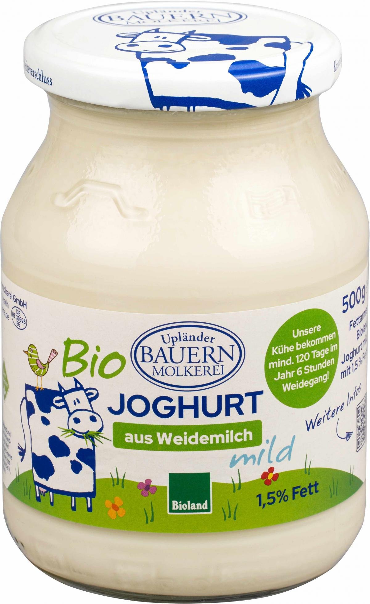 Der fettarme Upländer Bio-Naturjoghurt aus frischer Weidemilch mit 1,5% Fett. Durch die milden Joghurtkulturen erhält der cremig-gerührte Naturjoghurt seinen fein-säuerlichen Geschmack.