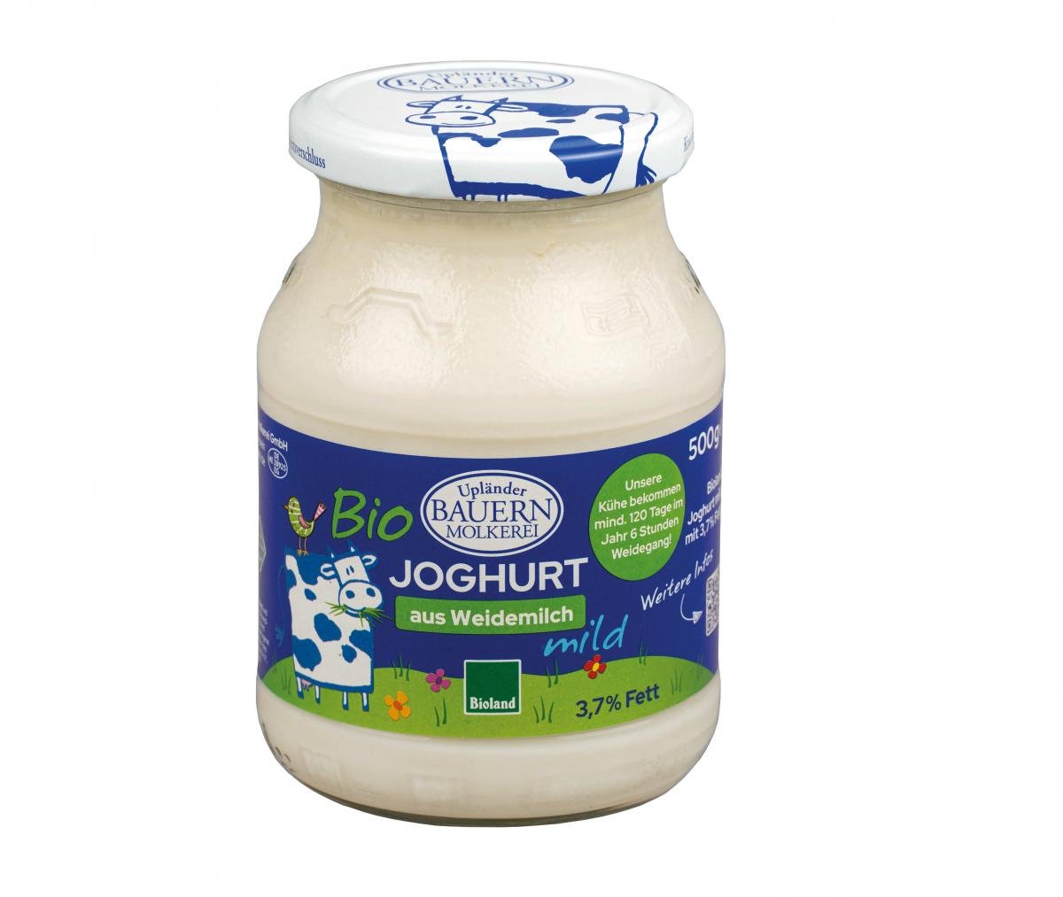 Der Upländer Bio-Naturjoghurt aus frischer Weidemilch mit 3,7% Fett. Durch die milden Joghurtkulturen erhält der cremig-gerührte Naturjoghurt seinen fein-säuerlichen und vollmundigen Geschmack.