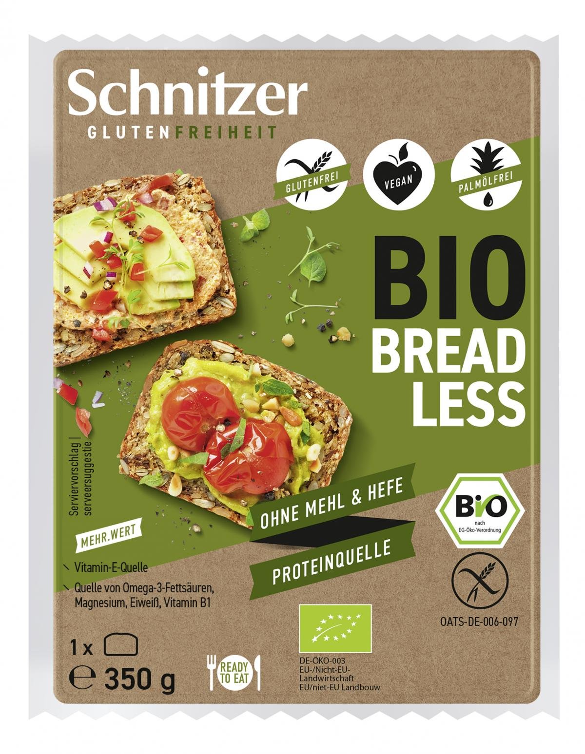 Bio Bread Less: Ein Brot ganz ohne Mehl und Hefe - die Brotalternative. Auch für Körperbewusste und Sportbegeisterte. Reich an Saaten und Haferflocken, liefert das Vitalbrot hochwertigste Mineralstoffe wie Vitamin E, Omega-3-Fettsäuren, Magnesium, Eiweiß und Vitamin B1.