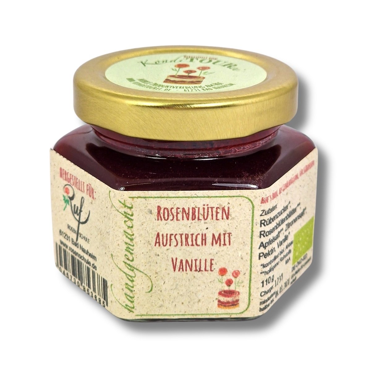 Marmeladenspezialität aus Rosenblütenblättern mit intensiv rosigem Aroma, ein Geschmackserlebnis verfeinert mit echter Bourbonvanille