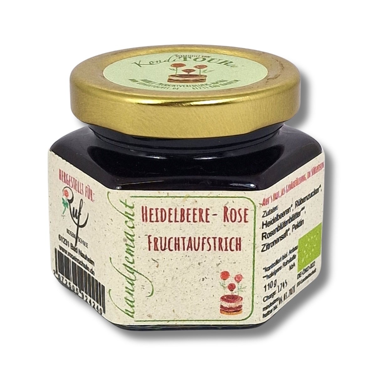 Heidelbeeren*, Rübenzucker*, Rosenblütenblätter**, Apfelsaft*, Zitronensaft*, Geliermittel Apfelpektin