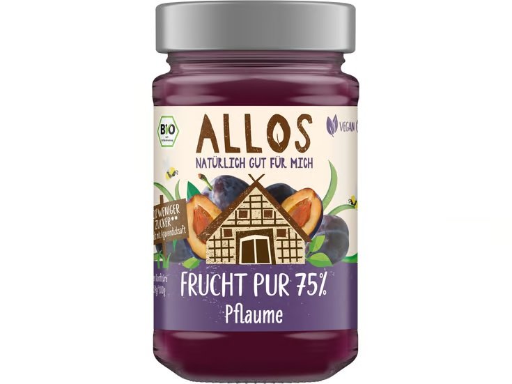 Zutaten: Pflaumen 55%, Agavendicksaft, Traubensaft, Apfeldicksaft, Geliermittel: Apfelpektin, Zitronensaft, Zimt, Festigungsmittel: Calciumcitrat, Süßholz gemahlen