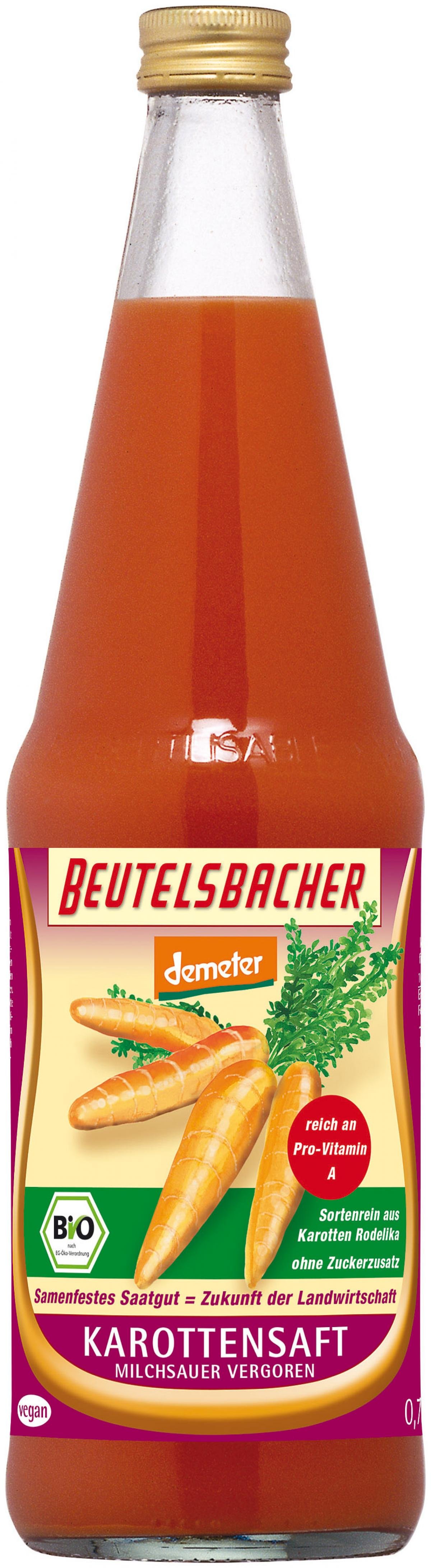 Sortenreiner milchsauer vergorener Direktsaft aus ernte-frischen Karotten ”Rodelika“, die von biologisch-dynamisch...